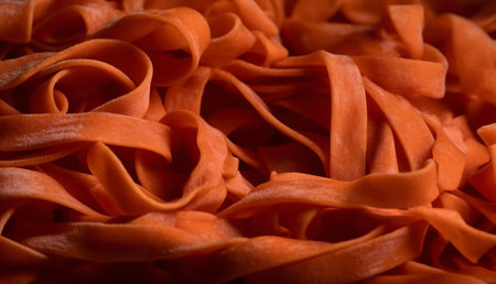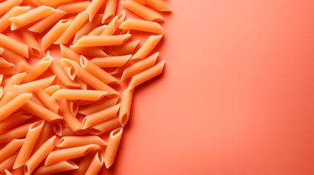 Orange pasta on minimalist background with copy space, italian cuisine concept for food lovers