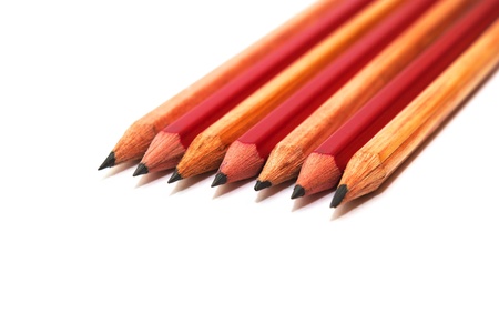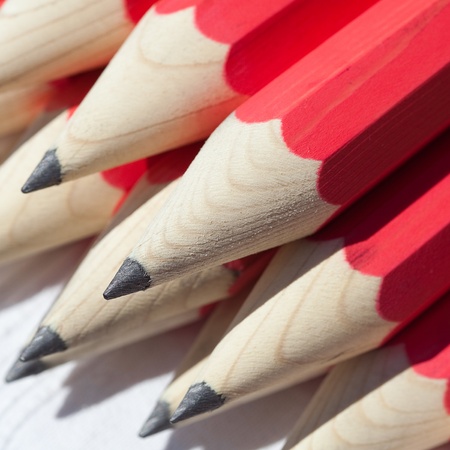 Red Pencils macro on white background closeup, school supplies