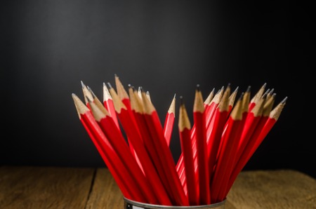 concept abstract group of red wooden pencils background with space