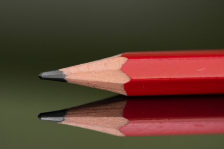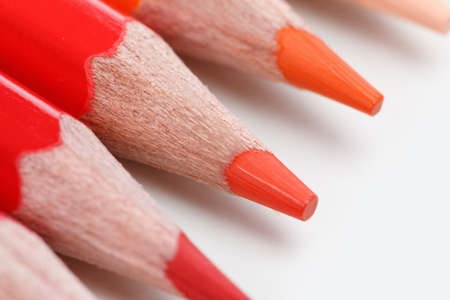 Red pencils on white background, close-up, creativity concept. Macrophotography. Selective focus