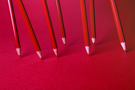 standing red color pencils