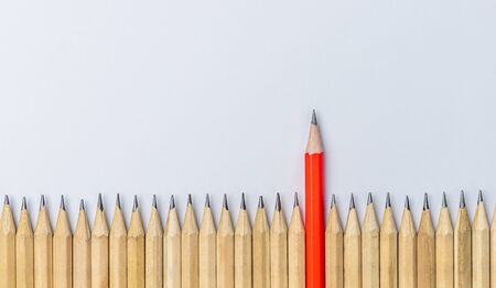 Back to school, Red pencil standing out from crowd, plenty business success concept