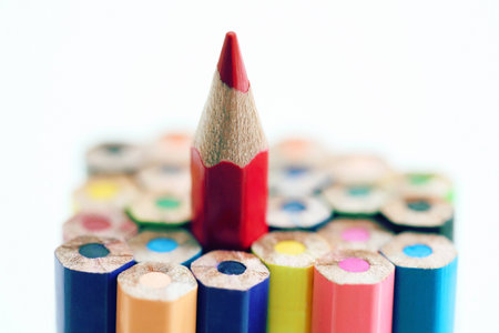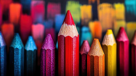 Closeup of a bold red pencil set against a lively background, highlighting artistic expression and individualism.