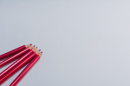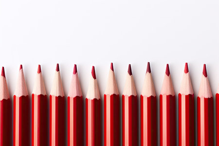 Row of sharp red drawing pencils on a white background with copy space