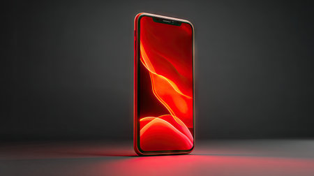 A stunning smartphone displaying a dynamic red screen, set against a minimalist dark background, highlighting its sleek design and modern features.