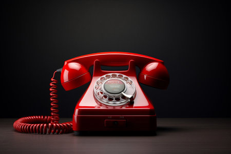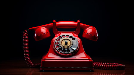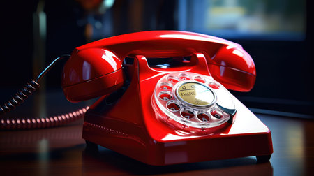 nostalgic red telephone illustration classic retro, antique shiny, dial close nostalgic red telephone