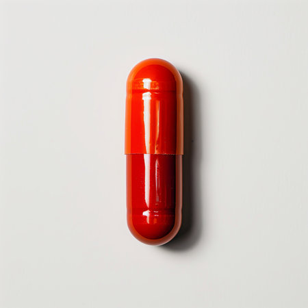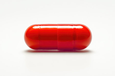 This vibrant red capsule sits alone, embodying vitality in a serene ambiance, suggesting health.