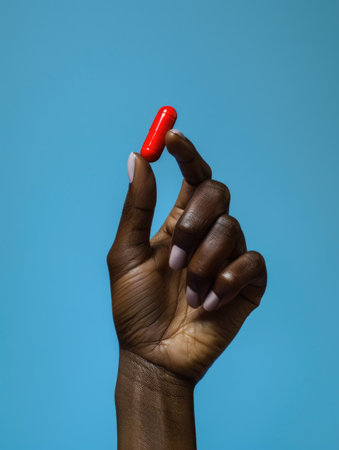 A single red pill held between two fingers, captured in a close-up, with a simple blurred background, symbolizing choice and health.