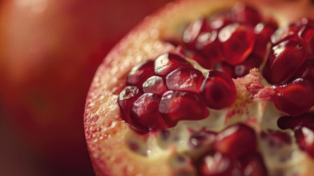 Generative AI, Macro Fresh Juicy half of pomegranate fruit background. Close-up photo