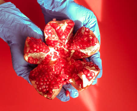 Pomegranate delivery to quarantine covid19 virus Top view