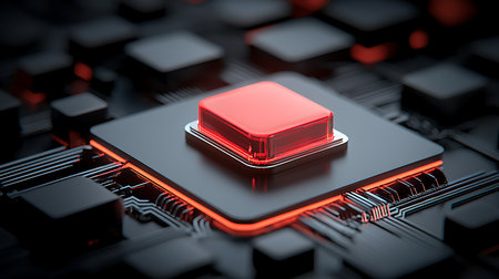Glowing Red AI Chip Motherboard A Symbol of Innovation, Technology, and Artificial Intelligence