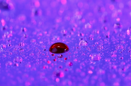 Abstract image of Water drop on floor with red and blue lighting effect background.