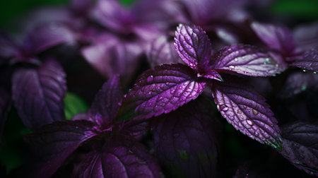 Culinary Purple basil herbs plant. Health culinary raw macro plant. Generate Ai
