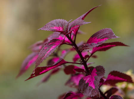 Macro view of rustic red coleus. Beautiful red leaves with natural background