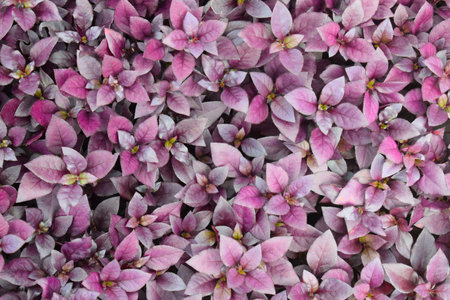 Leaves of purple basil closeup, top view abstract pattern