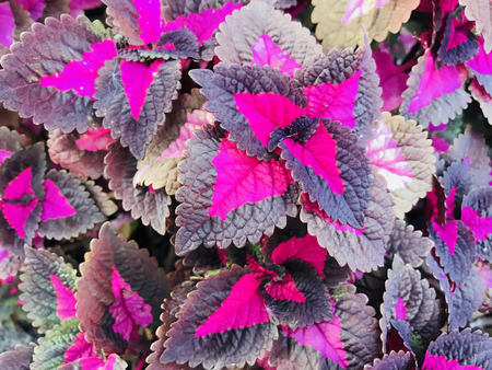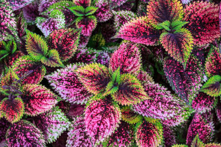 Beautiful leaves of Coleus plant with vibrant color. Natural color pattern background