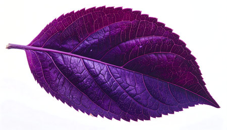 A purple-tinted coleus leaf perfectly positioned on a bright white background.