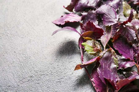 Violet basil leaves. Cooking spice. Close-up view.