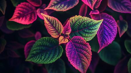 Generative AI : Detail of coleus blumei or painted nettle leaves