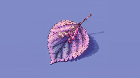 3d illustration of a purple leaf with berries on a blue background