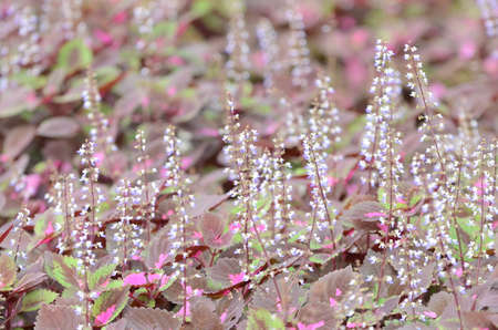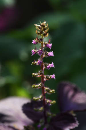 Japanese basil (Shiso herb) flowers. Lamiaceae annual aromatic herb.