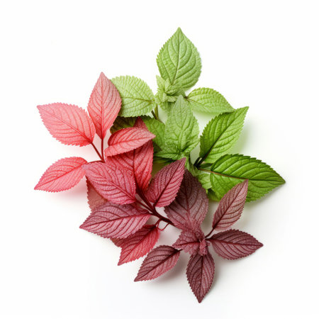 An AI generated illustration of red and green leaves on a white background