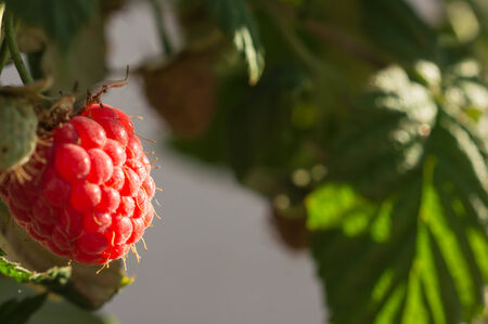 Berry of raspberries against a blurred background raspberry bush on a light background