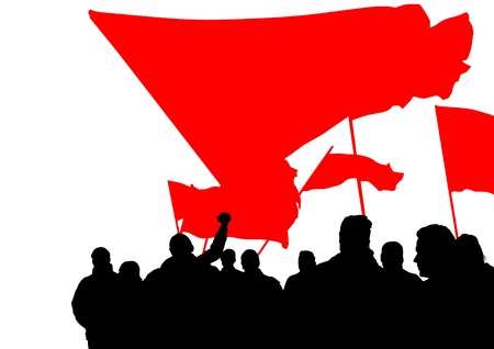 Picture of young active demonstrators with red flag