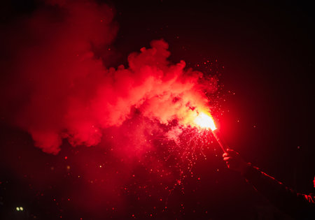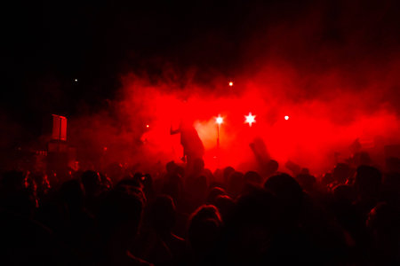 Red smoke during a concert in Konitsa, Greece