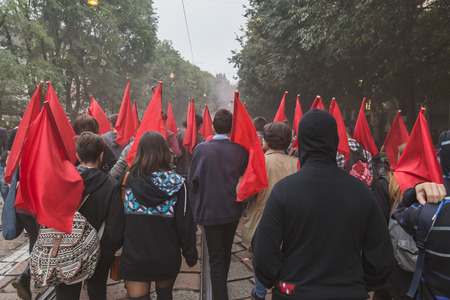 MILAN, ITALY - NOVEMBER 14: Student demonstration held in Milan November 14, 2014. Students took streets to protest against Milan expo to be held in 2015, event important worldwide.