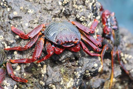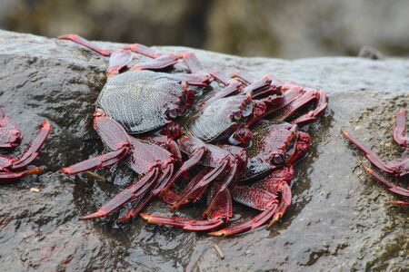 Reef crabs on the stones, Galapagos Island, Isla Isabela. With selective focus