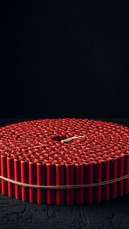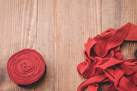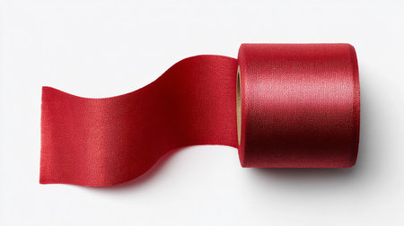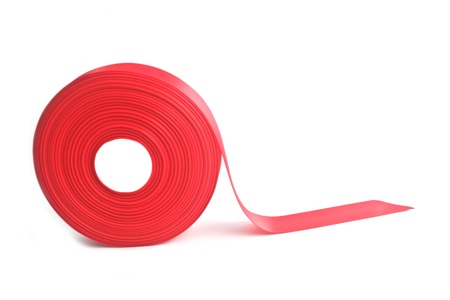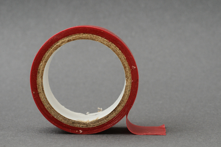 Red electrical tape on an abstract gray background. Top view. Space for lettering and design