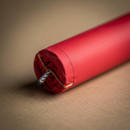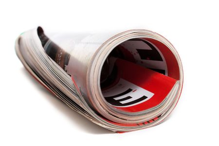 Close up shot of a roll of red Admit One tickets shot on white background with soft shadow