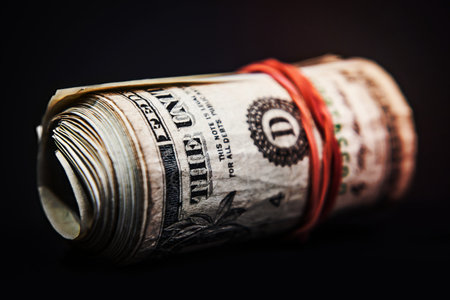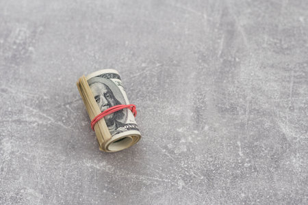 rolled into a tube and tied with a rubber band paper notes American dollars as part of the world economic system