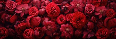 top view of red rosesle surface, panoramic shot