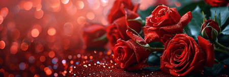 banner with red roses and glitter for valentine's day