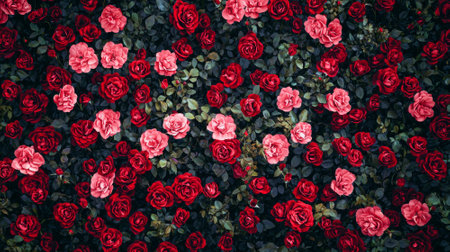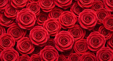 Immerse yourself in the natural beauty of fresh red roses with this captivating floral pattern wallpaper. Featuring a vivid top view of a red rose flower wall, its perfect for romantic and
