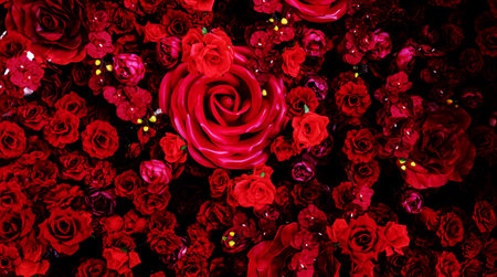 Panel of faux red roses. festive concept. March 8 valentine day. flower background