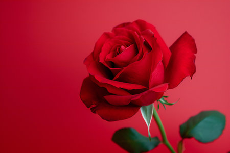 red rose on red background with copy space for valentine's day