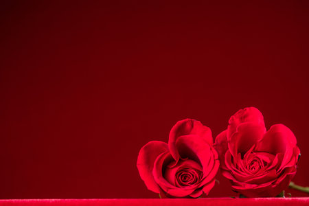 Red roses on red background with copy space. Valentines day concept
