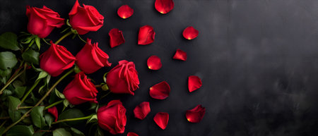 A stunning arrangement of vibrant red roses beautifully frames a dark background, perfect for romantic themes, celebrations, and elegant decorations.