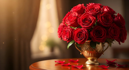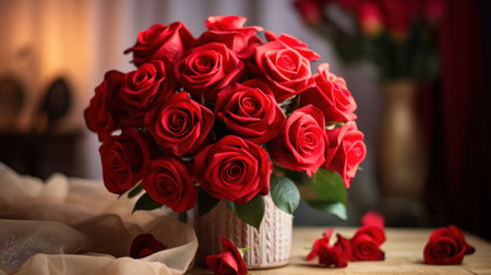 AI Generated. Bouquet of roses in vase elegant red rose, smooth, romantic background 14 Feb Valentine's day