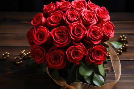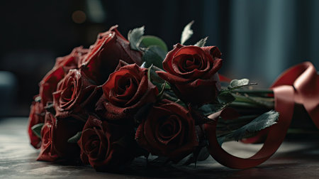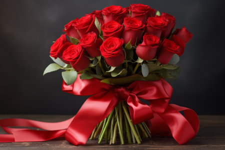 Bouquet of red roses tied with a red ribbon. Generative AI illustration