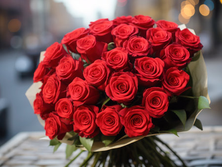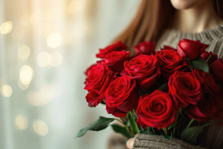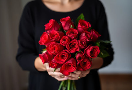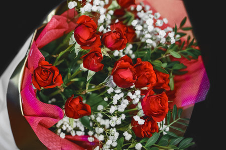 A bouquet of red roses: a touch of love in a modern style, Valentine's Day concept or Women's Day