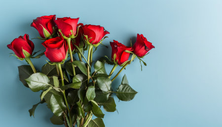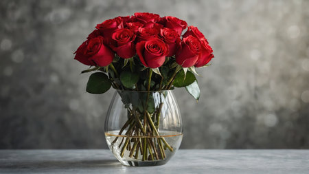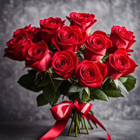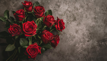A stunning arrangement of fresh red roses against a soft gray background. Perfect for themes of love, romance, and elegance in any design.