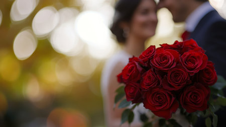Elegance of love captured in a romantic moment with roses in a park during autumn
