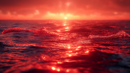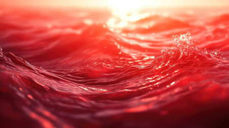 A striking portrayal of ocean waves infused with vivid red hues, creating a surreal and visually arresting scene. the contrast between the bold waves and the deep sky adds a dramatic artistic flair suitable for creative projects. Generative AI