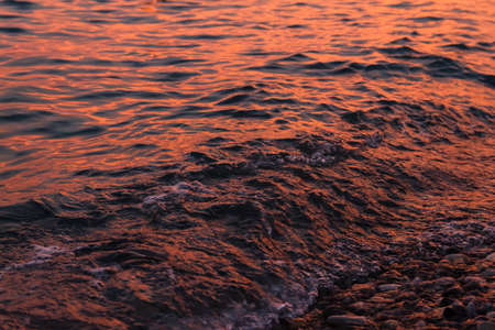 Real photo sea water waves, abstract background, nature power, bright orange red more tone in stock