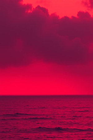 Twilight over the ocean with a crimson hue in the late evening.
