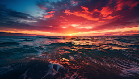 Colorful ocean sunset with vibrant sky and waves